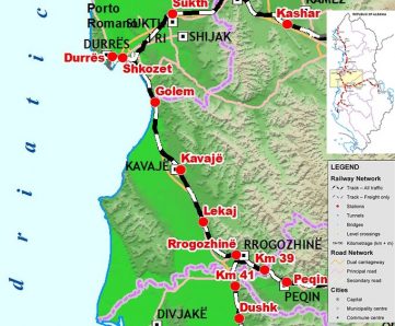 The Durrës – Rrogozhinë railway line is a critical segment of Albania’s national railway network, connecting the port city of Durrës, Albania’s largest seaport and a major economic hub, with the inland town of Rrogozhinë, the location of an important junction on the route between Durrës and Pogradec, which forms part of the Trans European Network Corridor VIII. This corridor serves both freight and passenger service and plays a vital role in the country’s transport infrastructure, economic development, and regional connectivity.